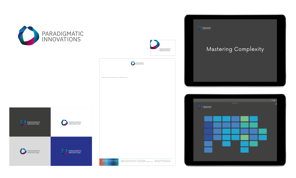 Logo and corporate design development for Paradigmatic Innovations